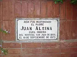 - ↑ a b c d Jordá Sureda, Miguel (2001). Martirologio de la Iglesia chilena: Juan Alsina y sacerdotes víctimas del terrorismo de estado. Santiago de Chile: LOM Ediciones. ISBN 9562823571.