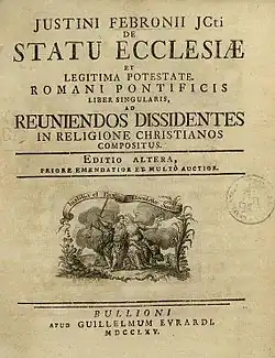 - ↑ Van Hove, Alphonse. "Johannes Nicolaus von Hontheim." The Catholic Encyclopedia Vol. 7. New York: Robert Appleton Company, 1910. December 27, 2019]