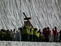 Las Hermanas de la Cruz afirmaron que del mismo modo que Jesús se cayó transportando la cruz, las personas deben levantarse. Se animó a aquellas personas que tropiezan en la vida, y que son víctimas del alcohol, las drogas y otros vicios, para que apoyados en Cristo, se levanten.[49][50]