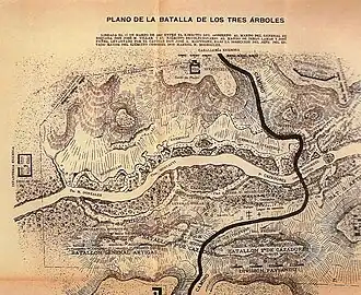 En la madrugada del 17 de marzo de aquel año fueron atacados en el arroyo Tres Árboles, en lo que se conoció como Batalla de Tres Árboles; y buena parte del mérito correspondió a la infantería mandada por Núñez, que ese día dio una lección de coraje y temple, según reconoció Lamas.