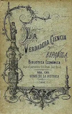 En una peña del café de las Delicias de Barcelona concibió la idea de editar una biblioteca popular, mientras estaba enfrascado en sus estudios de Derecho, Patrística y Filosofía.[13] Así surgió La Verdadera Ciencia Española (Barcelona, 1881), colección fundada por él en la que publicó más de cien volúmenes.[7]