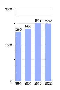 En el censo 2022 la localidad mostró datos de despoblamiento con un descenso que situó en 1592 a sus habitantes y 844 viviendas. [5]Además, el censo dio a conocer datos de su composición poblacional (795 hombres 797 mujeres), densidad y área urbana.[6]