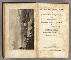 - ↑ Gregg, Josiah (1844). Commerce of the Prairies. New York: Henry G. Langley. pp. Two volumes, 320 pp. and 318 pp.