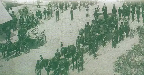 Fotografía que ilustra el sepelio del asesinado presidente de Uruguay Juan Idiarte Borda. Este crimen fue el único magnicidio en la historia del país.
