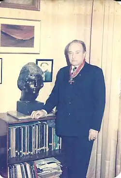 ![]() Juan Pedro Franze en su casa de Chacabuco 409, Buenos Aires, luciendo la condecoración del gobierno alemán | ||