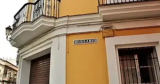 - Calle Honsario. Recibe este nombre a causa de formar parte del antiguo Fonsario de los judíos, concedido después de la Reconquista a la Aljama respectiva de la ciudad por Alfonso X. Dicho enterrameinto comprendía el terreno entonces despoblado desde San Francisco a Sto. Domingo, con dirección a la Carrera de Arcos. De dicho fonsario hizo donación la ciudad en 1469 a Martín de Vera, hijo de Pedro de Vera, el célebre conquistador y Gobernador de las Canarias. La construcción de casas por estos lares empezó en 1395 y continuó en 1460, celebrado ante Juan de Torres, se manda sacar a çienso e tributo los solares de la parte cerca del fonsario de los judíos para edificar en ellos.