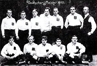 - ↑ "Leí hoy en el Sportbericht Stuttgart que los grandes clubes, incluido el KFV, han tomado la decisión de excluir a los judíos de los clubes deportivos. Desafortunadamente, es con gran pesar que debo anunciar mi renuncia a mi querida KFV, a la que pertenezco desde 1902. Hoy también hay personas honestas y quizás muchos más judíos alemanes que piensan nacionalmente y que lo han demostrado con acción y que han derramado su sangre con ardor."