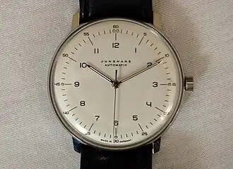 La empresa comenzó a producir relojes de pulsera en 1927 y, durante las décadas siguientes, creó relojes para el mercado civil y para la fuerza aérea alemana.[7] A partir de la década de 1950, el diseñador Max Bill, formado en la Escuela de la Bauhaus, creó productos para la empresa, en particular el "Reloj de cocina con temporizador" en forma de lágrima, que se puede encontrar en la colección del MoMA, al que siguió una serie de relojes cuyo lanzamiento comenzó en 1961. La relación entre Junghans y Bill duró muchos años, y la compañía ha seguido lanzando nuevos modelos basados en su trabajo. Muchos de los relojes más vendidos de la compañía en la actualidad se basan en los diseñados por Bill.[8]