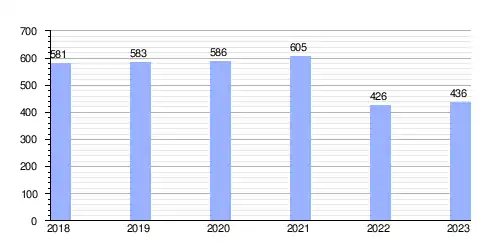 | Gráfica de evolución demográfica de Károlyháza entre 2018 y 2023 |