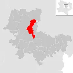 Se encuentra ubicada en el centro del estado, a poca distancia al oeste de Viena y al norte del río Danubio.[2]