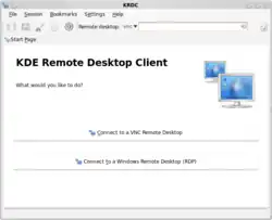 KRDC (KDE Remote Desktop Connection) es un software de aplicación, particularmente un cliente de escritorio remoto de KDE.