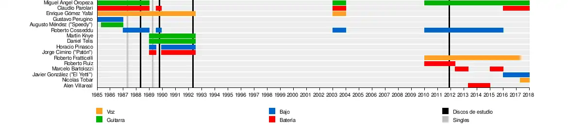 Roberto Cosseddu Enrique Gómez Yafal Alen Villareal Gustavo Perugino Augusto "Speedy" Méndez Martín Knye Daniel Telis † Horacio Pinasco Jorge "Patón" Cimino Roberto Ruiz Marcelo Bartolozzi Roberto Fratticelli | ||