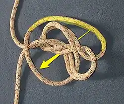 Tire hacia atrás los dos hilos de cuerda más cercanos al bucle dentro del nudo.