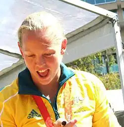 - ↑ Tuxworth, Jon (21 de febrero de 2012). «Stinger survivors in the swim for third Olympics». The Canberra Times (Canberra). p. 19.