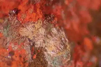 ![]() Kenhsuita y cinabrio. Mina Oriental, Chóvar (Castellón) España. | ||