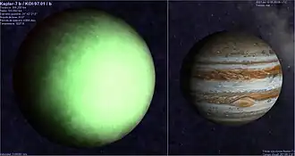 ![]() Comparación del tamaño de Kepler-7 b con Júpiter. | ||