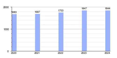 Hasta 2024 la población era de 1844 habitantes,[2] con una densidad de población de 50,64 hab/km².[2]