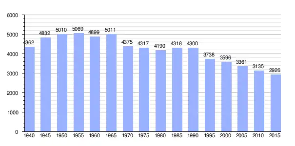 | Gráfica de evolución demográfica de Kiso entre 1940 y 2015 |
