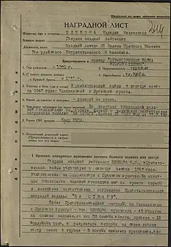 - ↑ «Кудленко Клавдия Михайловна: Память народа». pamyat-naroda.ru (en ruso). Consultado el 20 de febrero de 2022.