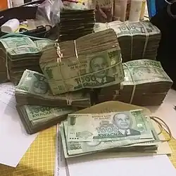 | Billetes | 20, 50, 100, 200, 500, 1000, 2000 kuachas | ||||