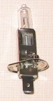 La lámpara H1 hace uso de un casquillo P14.5s, de acuerdo con la norma IEC 60061.[1] Esta es una pieza metálica de 14,5 mm de diámetro con un corte y dos pestañas, para que la bombilla solo se pueda instalar en la posición correcta. Tiene un terminal macho de 6,35 mm en el centro de la base, por el que se suministra electricidad. La conexión a tierra se hace por la misma base.