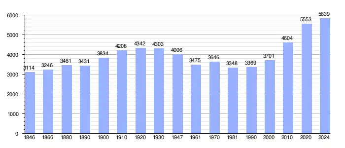 El siguiente gráfico refleja la evolución demográfica del territorio actual del municipio, incluyendo los municipios que se fusionaron el 1 de enero de 1977.