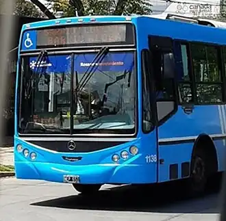 Mercedes-Benz operando la línea Enlace Noroeste, de la empresa Movi. En la cartelera de abajo se puede leer el acrónimo "Enor" correspondiente a la línea.