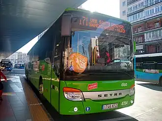 La línea 171 de la red de autobuses interurbanos de Madrid une la terminal de autobuses del Intercambiador de Plaza de Castilla con la Urbanización Santo Domingo en Algete.