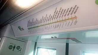Pantalla de recorrido sobre las puertas del tren.