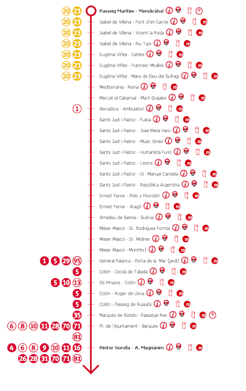 | Dirección M. de Sotelo | Dirección Passeig Marítim |
