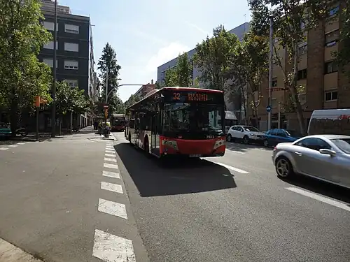 Autobús de la línea 32 a su paso por Av. Mare de Déu de Montserrat. | ||