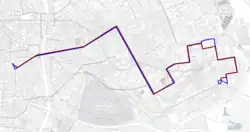 Dentro del barrio, la línea circula por las calles Julia García Boután, Sofía, Suecia y, finalmente, el Paseo de Ginebra, donde tiene su cabecera en la intersección con la Avenida de Niza.