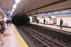 Andenes de la Línea 3 en la estación de Delicias. | ||||||||||||||||||||||||||||||||||||||||||||||||||||||||||||||||||||||||||||||||||||||||||||||||||||||||||||||||||||