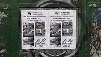 Con motivo de la inauguración de la línea 3 del metro, el 8 de abril de 2017,[17] algunos vecinos de las zonas cubiertas por la hipotética línea 4 protestaron el día de la apertura y los días previos para exigir su inmediata construcción.[18]