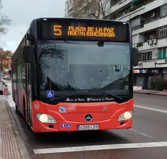 La línea 5 de la red de autobuses urbanos de Alcalá de Henares une la plaza de la Paz con el barrio de Nueva Rinconada.
