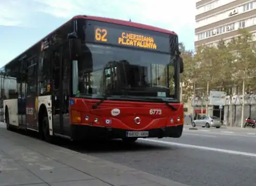 ![]() Autobús de la línea 62 en la Avenida Meridiana dirección Plaza Cataluña. | ||