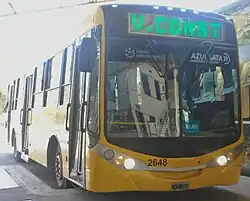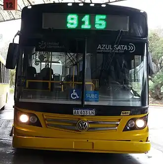 ![]() Volkswagen 18.280 OT LE de Azul Sata, empresa controlada por Rosario Bus. Esta, presta el servicio de la línea 915. | ||
