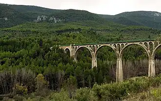 - Viaducto sobre el río Barxell: 150 metros de longitud y 30 de altura sobre el cauce.