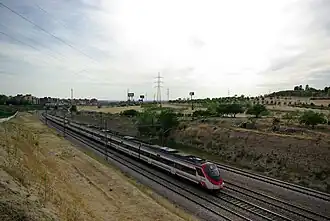 ![]() Un tren Civia circula por la línea, cerca de Vicálvaro. | ||||||||||||||||||||||||||||||||||||||||||||||||||||||||||||||