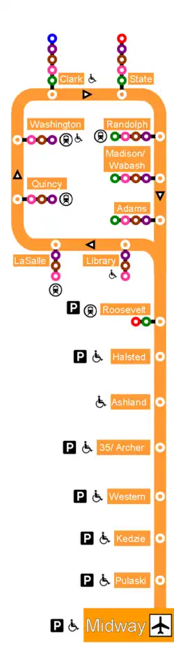 La línea Naranja (en inglés: Orange line) del Metro de Chicago comúnmente conocido como Chicago "L", consiste en 19 estaciones. La línea inicia en la estación Midway en el Aeropuerto Internacional Midway a la estación The Loop en el Centro de Chicago. La línea fue inaugurada el 31 de octubre de 1993.