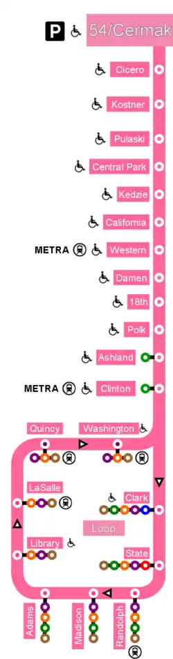 La línea Rosa (en inglés: Pink line) del Metro de Chicago comúnmente conocido como Chicago "L", consiste en 22 estaciones. La línea inicia en la estación 54th/Cermak en Cícero a la estación The Loop en el Centro de Chicago. La línea fue inaugurada el 25 de junio de 2006.