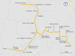 La línea T4 es la antigua línea de Coquetiers que unía las grandes líneas de la Compañía de Ferrocarriles del Norte y la Compañía de Ferrocarriles del Este entre las estaciones de Aulnay-sous-Bois y Bondy.