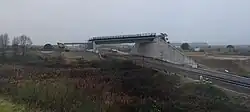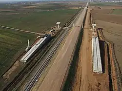 ![]() Construcción de la línea a la altura de Montijo | ||