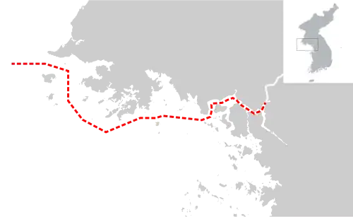 La línea se extiende entre la parte continental de la provincia de Gyeonggi-do que había sido parte de Hwanghae antes de 1945, y las islas cercanas a la costa, incluidas Yeonpyeong y Baengnyeongdo . Debido a las condiciones del armisticio, la parte continental volvió al control de Corea del Norte, mientras que las islas permanecieron como parte de Corea del Sur a pesar de su proximidad.