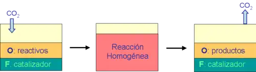 - Líquidos expandidos: Una metodología diferente es la utilización de un fluido supercrítico, (por ejemplo CO2) en un sistema bifásico (fase orgánica - fase fluorada), para crear una fase homogénea en la cual ocurre la reacción, liberándose luego el fluido como gas, de manera que se generen de nuevo las dos fases; los productos quedan en la fase orgánica y el catalizador queda secuestrado en la fase fluorada, para su reutilización.