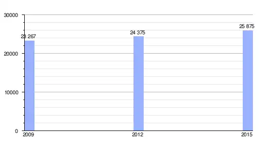 | Gráfica de evolución demográfica de L'Attalaye entre 2009 y 2015 |