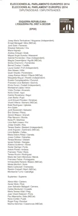- ↑ a b Proposta de Candidatura: Esquerra Republicana – NECat – Catalunya Sí. Eleccions al Parlament Europeu 2014 Archivado el 7 de abril de 2014 en Wayback Machine.