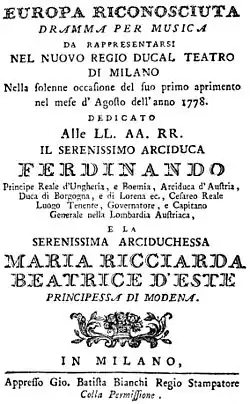 Se representó por primera vez con motivo de la inauguración del Teatro de la Scala de Milán el 3 de agosto de 1778, y fue recuperada después de un largo olvido para la reapertura del mismo teatro el 7 de diciembre de 2004, bajo la dirección del director de orquesta Riccardo Muti.