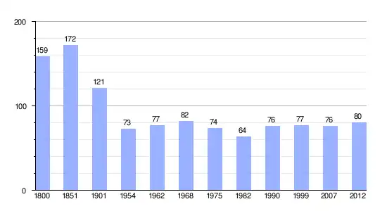 | Gráfica de evolución demográfica de L'Hôpital-Saint-Blaise entre 1800 y 2012 |