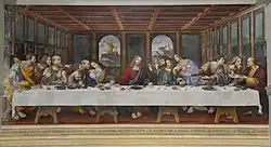 La última cena (en italiano: Il cenacolo o L’ultima cena) es una pintura mural obra de Leonardo da Vinci, realizada entre 1495 y 1498.[1][2]​ Permanece en la pared sobre la que se pintó originalmente, en el refectorio del convento dominico de Santa Maria delle Grazie, en Milán (Italia).[3]​ Fue declarada Patrimonio de la Humanidad por la Unesco en 1980.[4]​ Fue un encargo del duque Ludovico Sforza de Milán. No es un fresco tradicional, sino un mural ejecutado al temple y óleo sobre dos capas de preparación de yeso extendidas sobre enlucido. Mide 460 cm de alto por 880 cm de ancho. Muchos expertos e historiadores del arte consideran La última cena como una de las mejores obras pictóricas del mundo.[5]